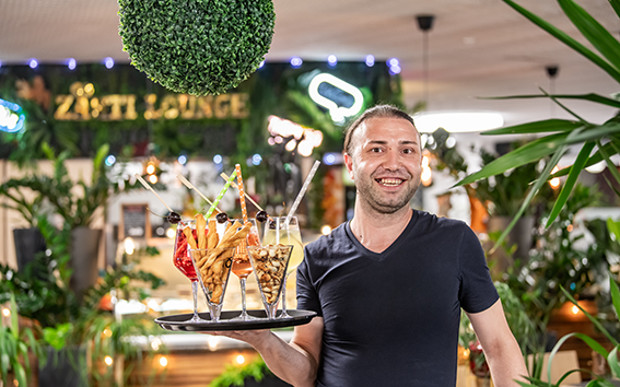 Das Team um Mehmet Akarsu freut sich darauf, Sie in der Zänti Lounge so richtig verwöhnen zu dürfen. Bei schönem Wetter können Sie Ihr Getränk auch auf der Terrasse geniessen. Übrigens: dort darf auch geraucht werden.